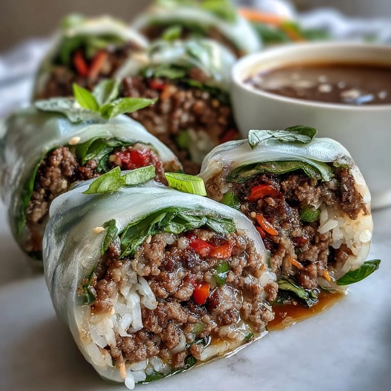 Pin It There is something deeply satisfying about biting through that soft, translucent wrapper into layers of savory beef and crisp fresh herbs. These rolls have become my go-to for bringing people together around food that feels both nourishing and special.